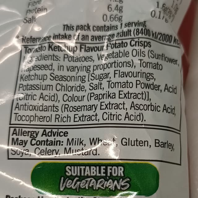These crisps are marked as vegetarian, but I can't see any non-vegan ingredients on the ingredients list - please let me know if I have missed something! They have quite a sweet tomato flavour which is close to prawn cocktail flavoured crisps. The seasoning is pleasant, though not especially punchy. The crisps are enjoyably thin-cut and crunchy. These cost £2.15 for a multipack of six 25g bags in Tesco. I like them, although I'd prefer a share-size bag to reduce all the plastic wrapping, and I wish they'd clearly mark that the recipe is vegan too.