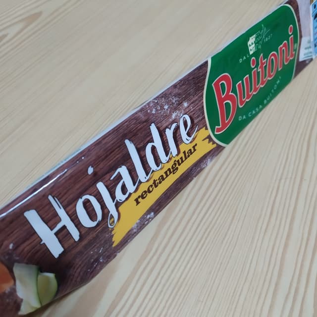 Masa de hojaldre rectangular de la marca Buitoni comprado en GM Cash. Desde que la probé por primera vez me gusta mucho y es el que compro siempre. Se maneja con mucha facilidad, se notan perfectamente las distintas capas del hojaldre tras hornearlo (no como otros que quedan más compactos), se hincha un poco (con lo que queda más bonito porque coge más forma), es muy accesible al tratarse de una marca presente en todos los supermercados y el sabor es agradable.