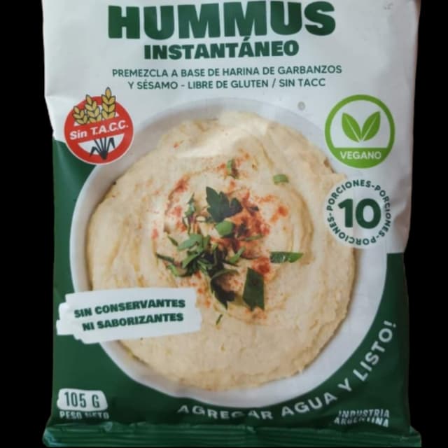Está bueno, es práctico, tiene garbanzo y sésamo y se le agrega liquido.