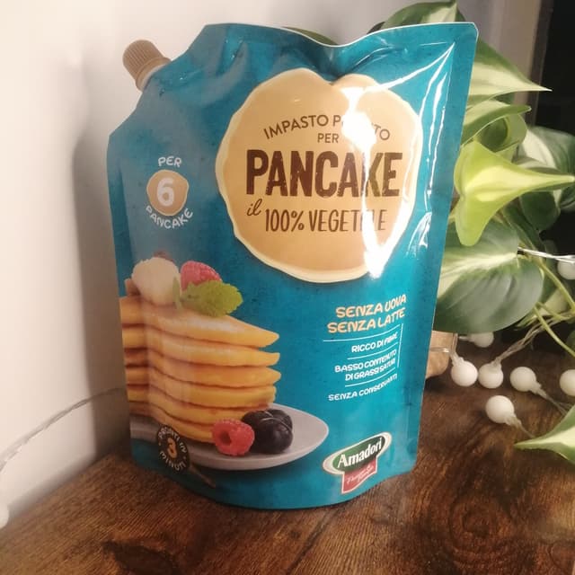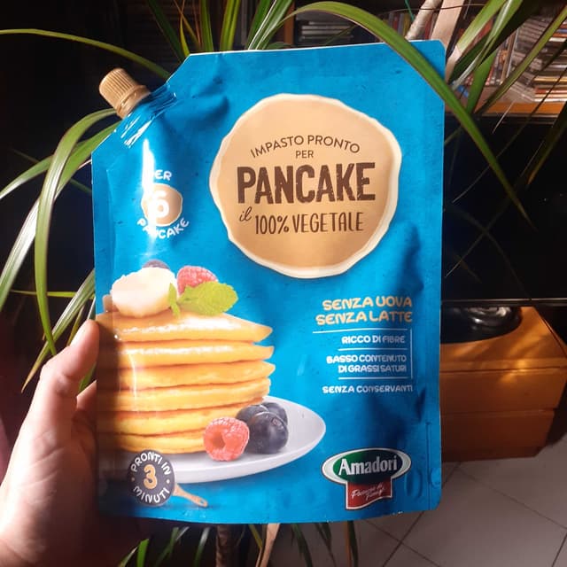 Impasto pronto per pancake vegani. Mi sono fatta convincere dallo sconto (l'ho pagato 1€) e dal fatto di avere ospiti a cui preparare una colazione al volo e pochissimo tempo per prepararla. Non credo che la ricomprerò, perché fare i pancake è davvero una cosa troppo facile per sprecare tutta questa plastica per solo 6 pancake. Inoltre, è della Amadori, ma me ne sono accorta tardi. Detto questo, i miei ospiti (bambini e onnivori) hanno molto apprezzato e non si sono accorti della differenza con i pancake tradizionali. #rifugiomiletta #santuariocapraliberatutti