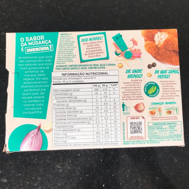 Me surpreendi com as Iscas de Peixe, feitas de proteína de soja, da marca Incrível. Coloquei na AirFryer por 10 minutos e ficou muito crocante e com ótima textura. Me preocupei achando que teria um cheiro forte de peixe, mas não! Lembra levemente um peixe empanado, mas tanto o sabor quanto o aroma são bem suaves. Não tem conservantes nos ingredientes, tem ferro e vitamina B12 adicionados e é fonte de fibras e proteínas. Além disso, não tem colesterol e a soja não é transgênica. O único problema é a atenção que temos que ter com o sódio e com as gorduras saturadas. #ranchodosgnomos