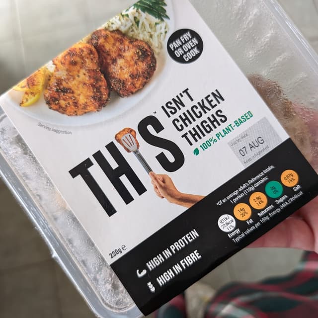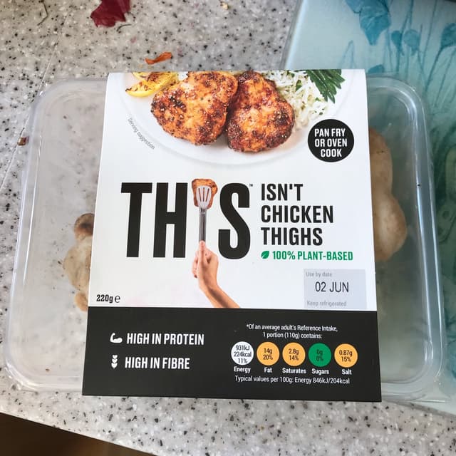 This stuff is AMAZING!! It has the texture and taste of chicken thigh, very juicy and just needs a sprinkle of pepper. I put it on a bowl of Indonesian leftover food, and it worked very well together. In terms of protein it's equal to actual chicken thigh, with only 2g of protein more in the animal-based version. There are 50kcal more in THIS, but considering the fact that you get a GREAT deal in terms of protein and taste, this stuff is a real game-changer. Come on THIS - we need this stuff in the Netherlands too!!