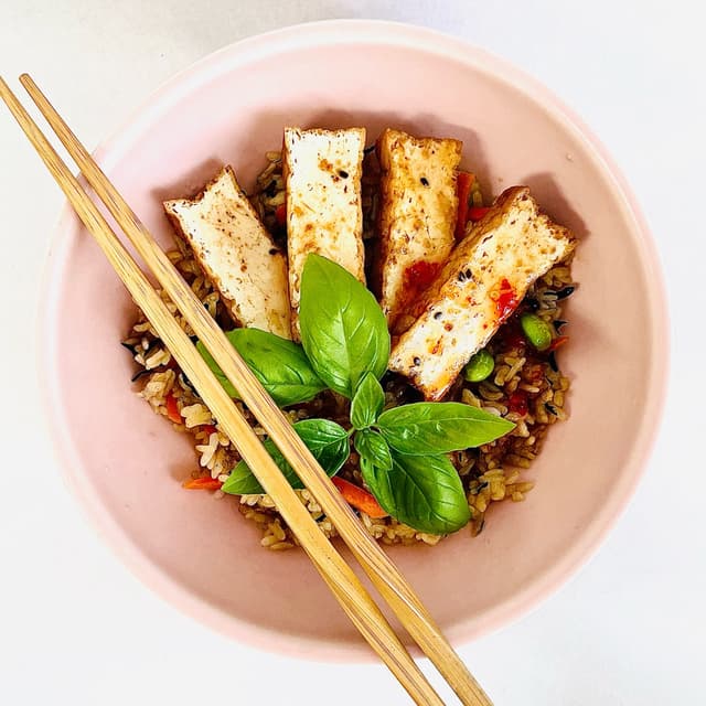 Trader Joe’s Japanese style fried rice is a genius product to have on hand, especially for those days when you don’t have the bandwidth to cook. Today, I put together lunch in under five minutes, then sat down, slowed down & enjoyed every single bite. Yum, highly recommended. Happy cooking! 🥢 #vegantraderjoes #santuariovegan #princess