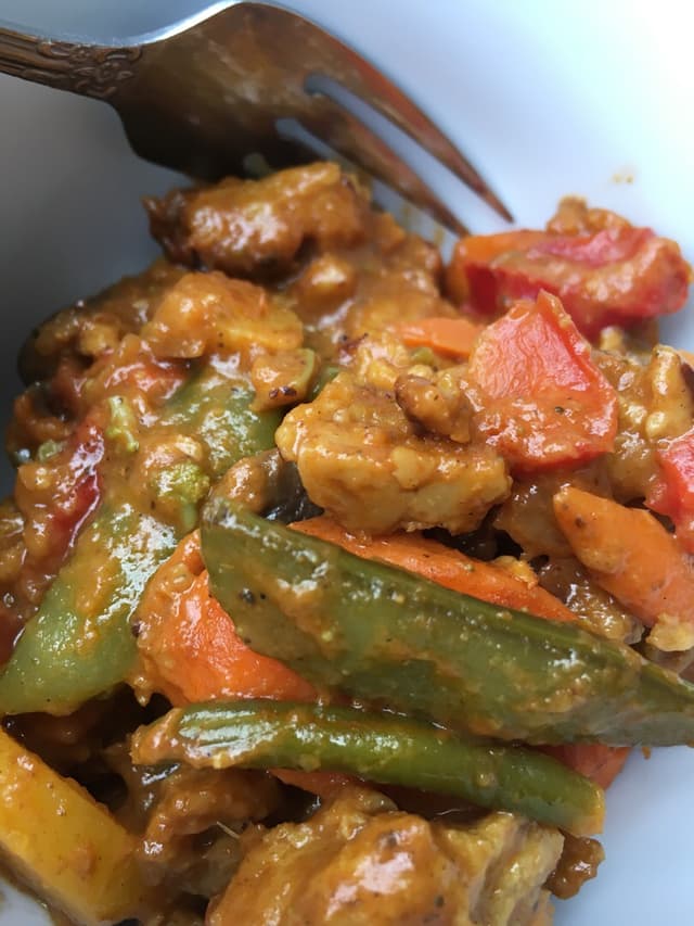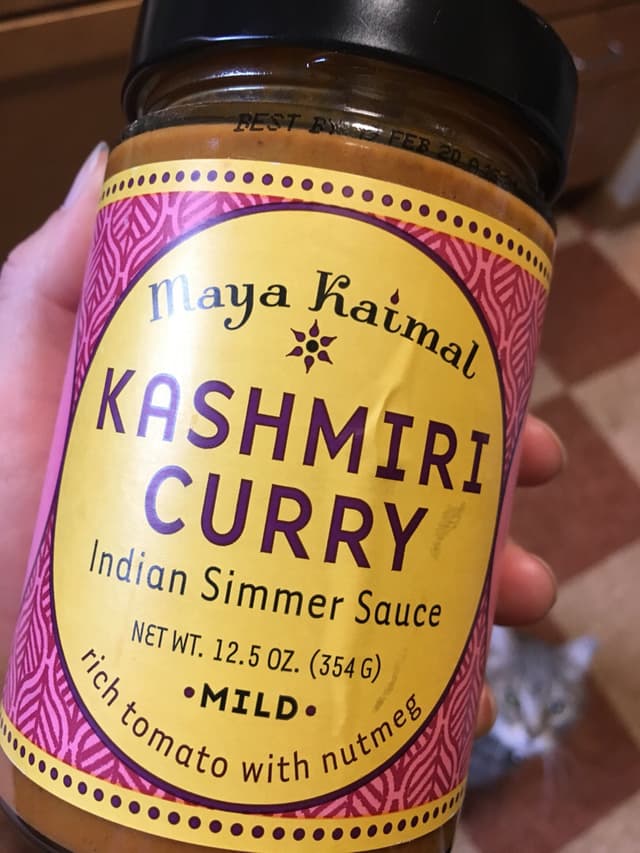 I'm so glad I picked this up on my last trip to Whole Foods! This makes for such an easy Indian curry! All I did was saute up about half a head of broccoli, six small carrots, and two mini onions. I added in a can of chickpeas towards the end, then added the sauce and simmered it for 10 minutes. It tasted really great with chickpeas, so I highly recommend choosing that for your protein. The first taste-test felt a bit flat, but all it needed was just a bit of extra salt. Luckily, the sodium content doesn't start out too high, so there's some wiggle room for your preferences. The flavor is tomato forward, but very creamy because of the coconut cream. Even though it's mild, there is a hint of spice that was really nice. I definitely see myself buying this again and trying out the other simmer sauces. #sauce #indianfood #curry #glutenfree #nongmo #vegancooking #veganrecipes #lazyvegan #vpantry