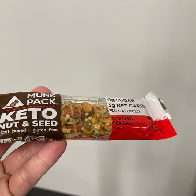 Wow, this nut and seed bar is quite good! Love the texture of the nuts and seeds with the caramel layer. Very satisfying. Not very sweet. I could enjoy a touch more sweetness but I suppose that would disrupt the “keto” aspect. A nice snack. Will scoop up again if on sale.