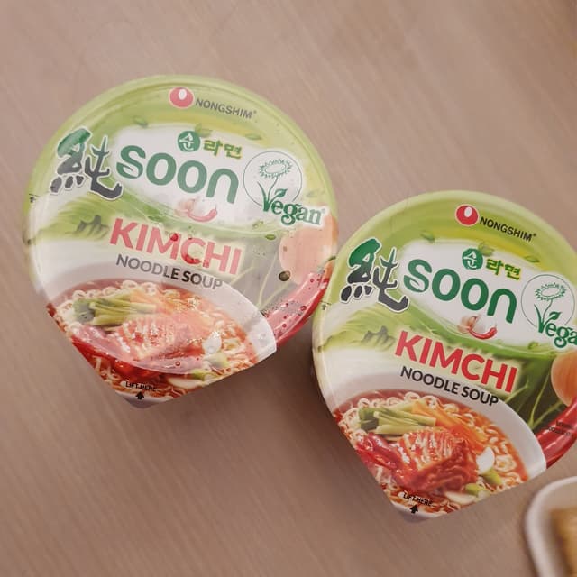 It has the word #vegan on the label so I had to get it. These #kimchi #instantnoodles are amazing! Nice flavor and not too #spicy #veganisnotscary #abillionlove #veganin2024 #vegankimchi #noodles #noodlelover #lazyvegan