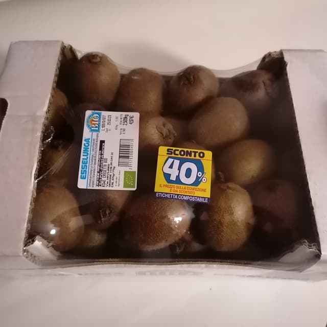 Kiwi biologici italiani al 40 % in meno. Un'intera cassetta di 2kg e mezzo mi è costata come una vaschetta con 5/6 kiwi. Packaging: cassettina in carton e, cellophane. Da Esselunga on line. #kiwi #frutta #govegan