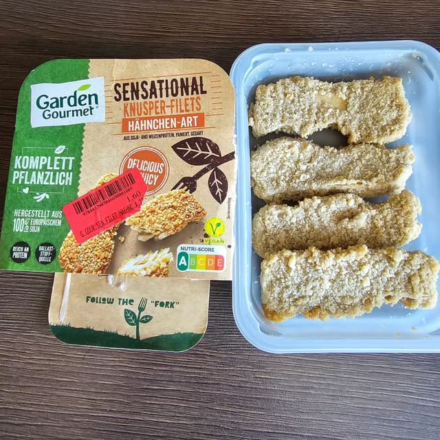 Garden Gourmet Knusper Filets Hähnchen Art Die Stückchen haben eine feste und faserige Struktur. Sie schmecken gut, haben aber keinen starken Eigengeschmack. Im Angebot würde ich sie mir wieder kaufen. Sonst aber nicht