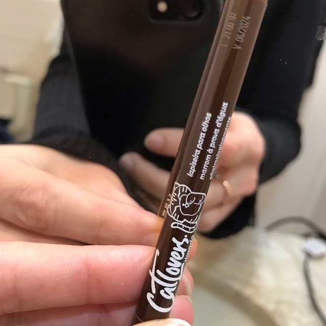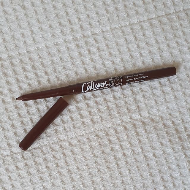 Lápis de olho marrom vegano retrátil e super fácil de manusear. Permite traços firmes. Eu amo.