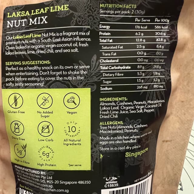 Good thing I only got the small pack to try. I was underwhelmed by this. Couldn’t taste the lime 🍋🟩 or the laksa leaf. It just tasted like ordinary nuts to me. What I would like is for them to activate their nuts. #nuts #notimpressed