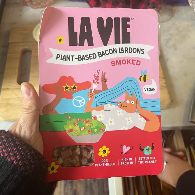 Our lardons vegetaux fumes are made with 100% plant-based ingredients and are smoked to perfection, giving them an irresistible taste and aroma. They have a crispy texture and a savory taste that is sure to satisfy your cravings for the real thing. These lardons are a great addition to your favorite dishes, whether you're making a vegan carbonara, a hearty vegan stew, or simply looking for a tasty snack. With their rich and smoky flavor, they are sure to impress your taste buds.
