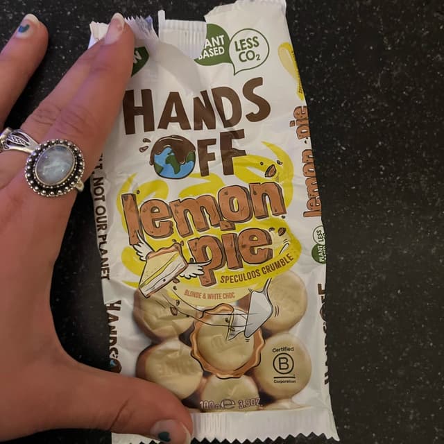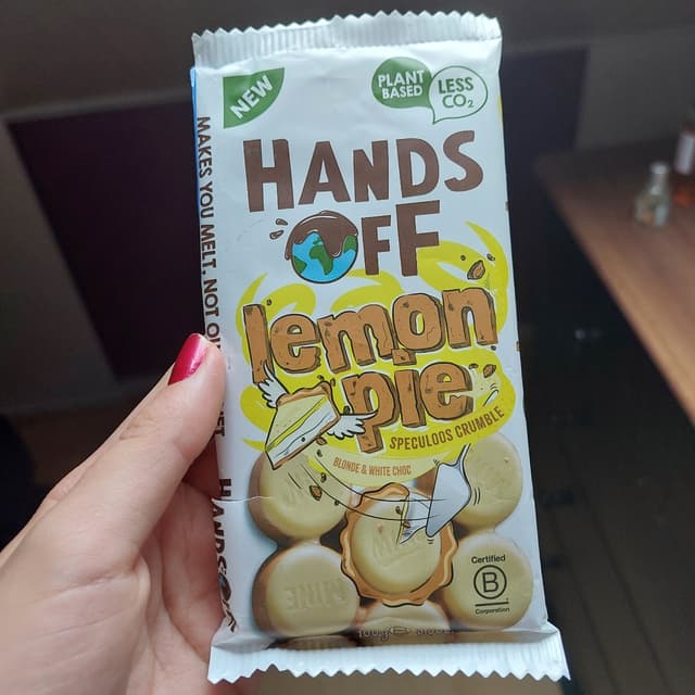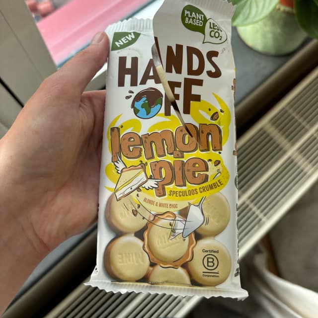 Hands off are knocking it out the park. This Lemon Pie is a new addition and it’s so good. Made with white chocolate with speculoos crumble and pieces of lemon. 🍋