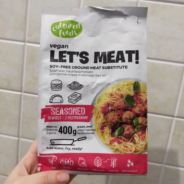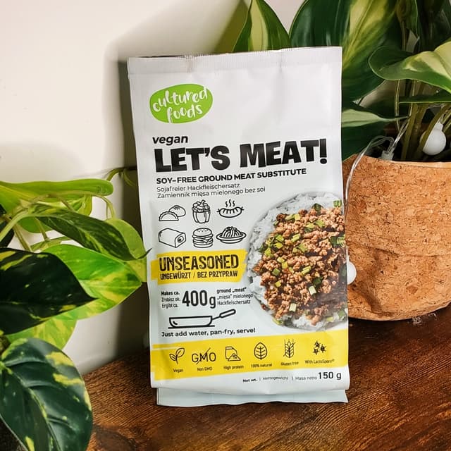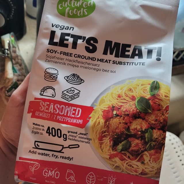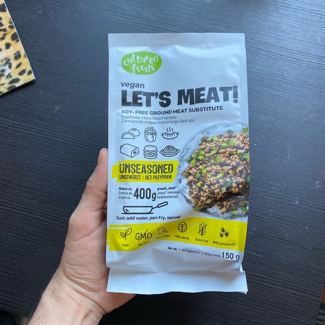 Macinato di carne vegan dal gusto molto particolare, è a base di proteine di piselli e ceci , ha il 44% di proteine. Così da solo è un po' strano ma condito con verdure e spezie è delizioso, io l'ho preparato con peperoni e cipolle e l'ho usato per condire delle piadine, buonissimo.