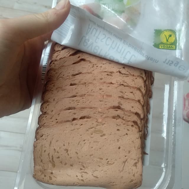 No reviews about this product yet? Indeed I've been looking for those Leverkäse cold cuts for weeks, too. A friend gifted me this onion version at their local Aldi (Süd) and it didn't disappoint. I guess if you gave this to a clueless omni, they would never guess that this was vegan. Very authentic, great texture and taste. Totally recommend! #aldi #vegancoldcuts