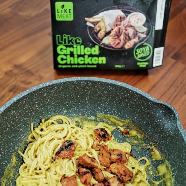 I tried this a while ago and forgot to write up my review, but according to my notes, it was essentially identical to the regular, non-grilled chick’n pieces (yellow bag) that I reviewed previously, but with a marginally smokier flavor. Since I’m obsessed with liquid smoke/#smoked flavors, I have a slight preference for this grilled variety, though both were really tasty.