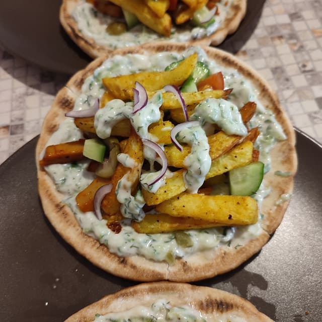 After the delicious vegan chicken pieces from the same brand, the bar was set super high. I expected a lot and in terms of the texture of the pieces, they were perfect. I didn't really care for the spices, though 😐 They were not bad at all, it's just not how I'd choose to flavor them.. Just like the plain ones, they were great. Probably next time I'd just get the plain pieces and flavor them myself. Still great for a quick homemade gyros 🥙 combined them with some veg, air fried potatoes and vegan tzatziki 😍 Bought from V-delivery 😊 #veganinbulgaria #veganin2022 #veganchicken
