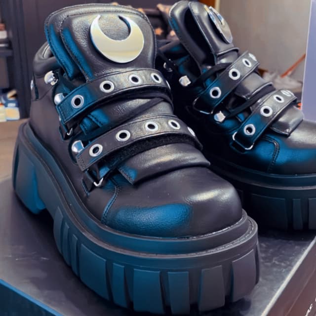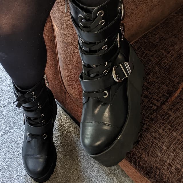Scarpe platform killstar in pelle sintetica, sono super comode e di buona fattura! non sono esageratamente alte ma riescono a regalare comunque un bel po’ di cm.