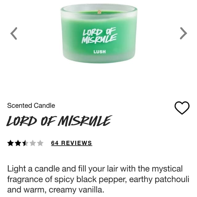 Lush's Lord of Misrule scent is intriguing and mysterious, it might take time to start appreciating but I've come to love it. unlike with their Karma line, the patchouli smell is fairly light and paired well with other scents to not be overpowering. as far as the candles' scent, it seems like they don't give off much of their smell until after the fire is put out and the wax is cooling. the smaller size option for their candles is good for probably 3-4 uses if you're gonna leave em burning for 3-5 hours. i don't see this scent option available on their website anymore, but there are 3 other scents of candles available at the moment: Sleepy, Orange Blossom, and The Olive Branch. $18 #tinycandles #inthewind #spookysmells #lordofmisrule