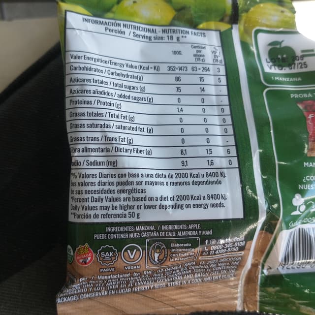 Encontré este snack en la farmacia Salcobrand! Ya no me sorprende porque siempre encuentro cosas nuevas ahí 😊 lo que si, esto significa que siempre me voy a estar llevando algo que no sea a lo que voy 😅 Estaba junto a otros snacks, barras de proteína y dulces “saludables”. También había otro que era lo mismo pero de manzana verde. Lo primero que busqué fue si había sello vegano y si está 🥰 es solo manzana deshidratada en cubitos. Es muy rico, la bolsa sale que todos los cubitos equivalen a una manzana completa, y sí habían muchos 😮 pensaba que sería menos, como otros snacks saludables que son como media bolsa, pero al comerlo encontraba más cubos escondidos. Me gustó bastante, sí lo recomiendo ❤️ #apple #chile #snack #manzana #veganchile
