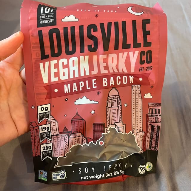 US Review; I found this Louisville #maple #bacon beef jerky in Sprouts on sale!! I should have grabbed a few bags 😭 but that’s ok. At least I got one. This #jerky was SO GOOD! It did get caught in my teeth, just like the icky jerky used to, so texture was perfect in that regard. The flavor was mouthwatering and delicious. Maple and bacon both accounted for. Yummy #snack ! #beefjerky #jerky #sprouts #chewy #maplebacon