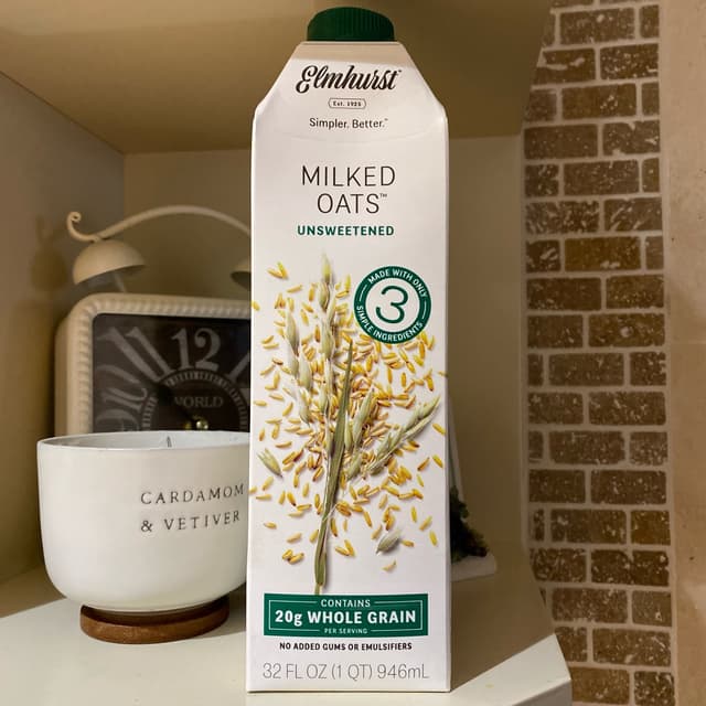We love Elmhursts Plant Mylk! I prefer the almond mylk since it only has 2 ingredients, no added sugar and “natural flavors” 😆lol!! This is still a good option but definitely waterier than the almond.