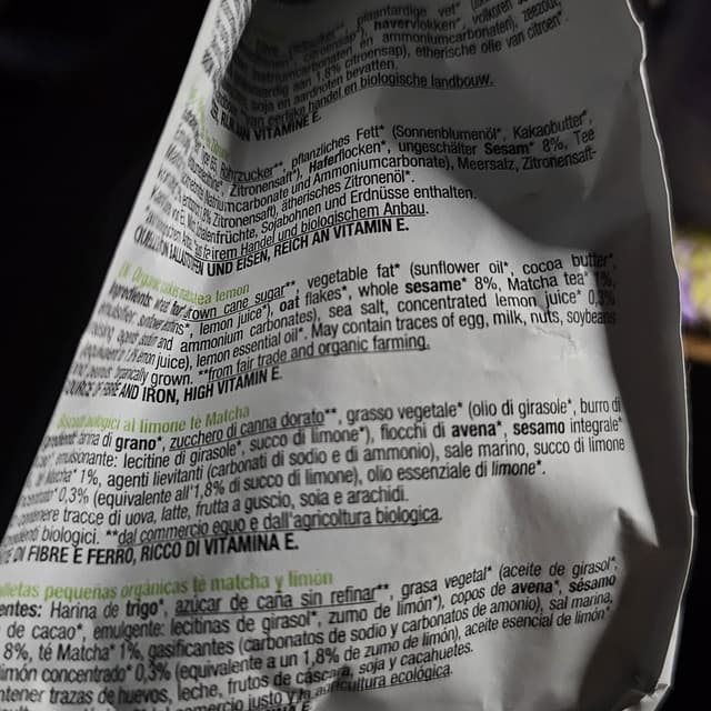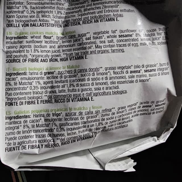 Questi biscottini li ho comprati a Madrid. Sono molto gustosi e croccanti. Peccato non averne acquistate più confezioni. Si sente il sapore del limone e del matcha. Non si appappettano troppo nel tea...