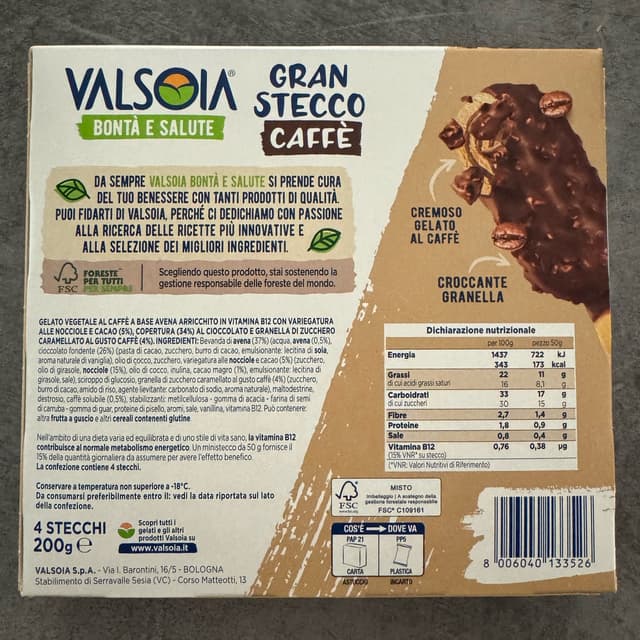 Ma che cosa posso dire?! Grazie di esistere Valsoia! Li ho trovati oggi alla Coop, non li avevo mai visti prima. Il gelato al caffè è buonissimo: spumoso, leggero, delizioso e non è troppo dolce; la parte al cioccolato credo abbia dei chicchi di caffè tostati all'interno: non vi dico che meraviglia! Ho visto che avevano anche un variegato al pistacchio in vaschetta, che avrei tanto voluto prendere se non avessi il freezer piccolo come il cervello di quelli che dicono: "non lo puoi chiamare gelato!1!111!" 😅