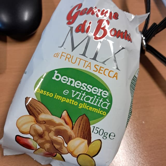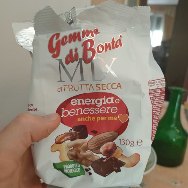 Buon mix di frutta secca in cui prevalgono le noci, purtroppo gli anacardi sono pochissimi come i pezzi di cioccolato fondente. Comunque buono per ricaricare le energie o arricchire lo yogurt. Comprato in promozione.