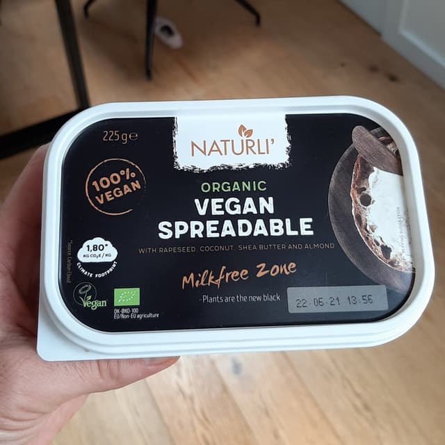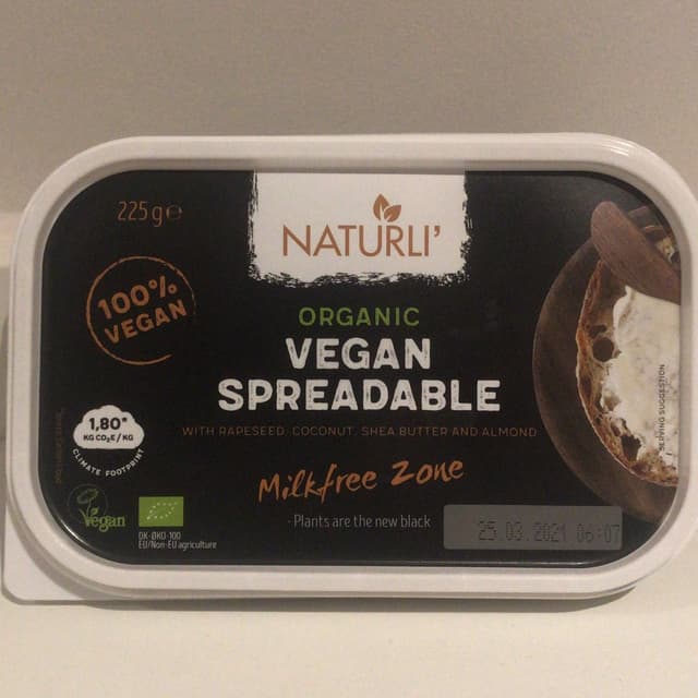 • Is Naturli’ organic vegan spreadable vegan? Yes! Naturli’ organic vegan spreadable is certified vegan by the abillion communityVEGAN