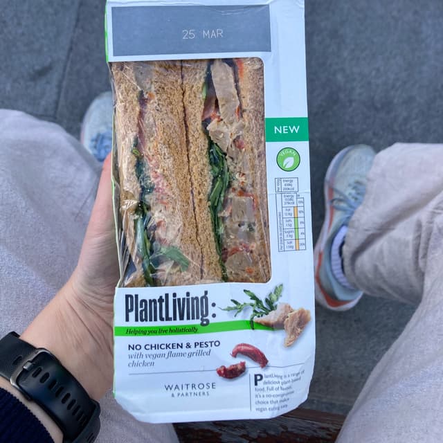 Plant life no chicken and pesto sandwich was tasty! The chunks of ‘chicken’ were flavourful & nicely chewy
