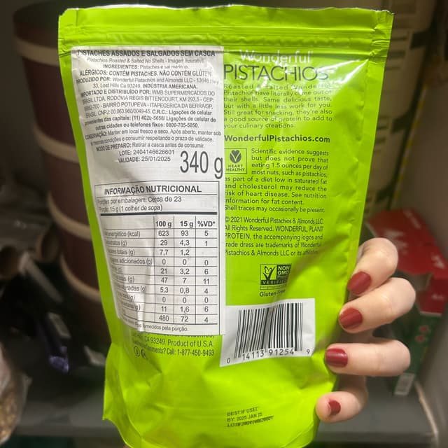 valentinealvim11 months agoSee TranslationPistaches assados, salgados e sem casca. Gostei como aperitivo, mas os prefiro o pistache em receitas. Bem prático.0