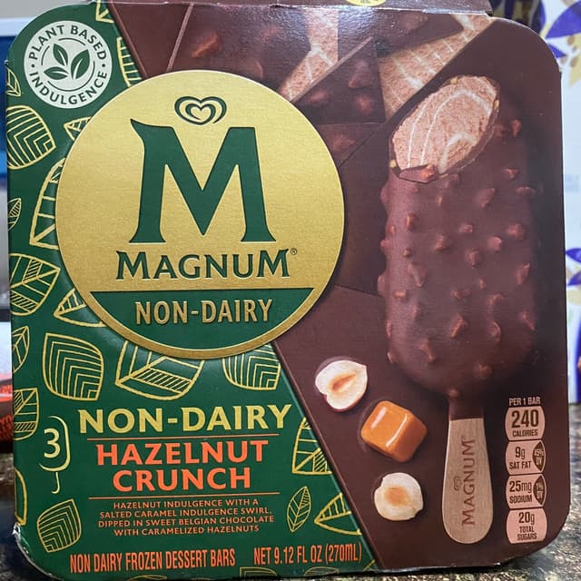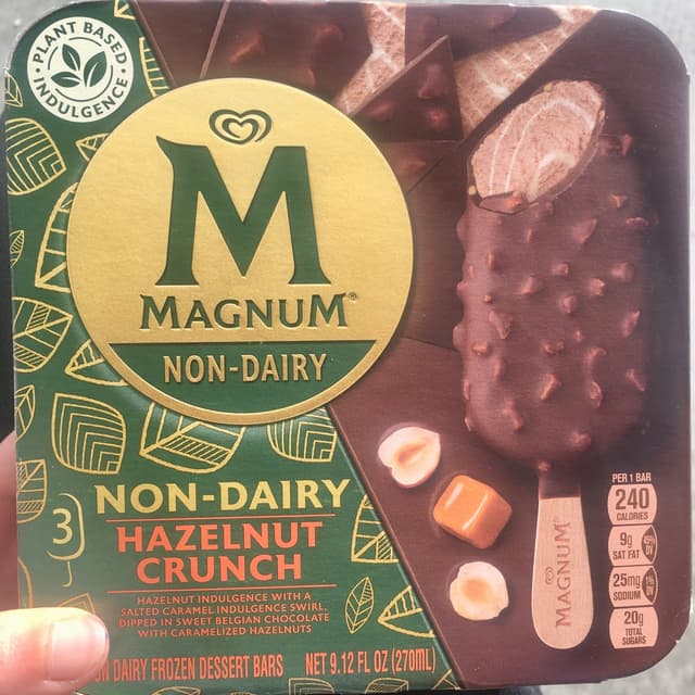 A few days ago I put my #abillionwishlist together and added these Hazelnut Magnums to it. I saw that these were released in the U.S. earlier this year but I’ve been unable to find them anywhere. I was hoping perhaps they’d expand distribution next year and I’d get lucky. Well, to my complete shock I saw that these landed at my local Grocery Outlet. The expiration date is not until October 2023 so I’m unsure why they are at Grocery Outlet; I hope they are not being discontinued. I’m a huge choc hazelnut fan so I love the flavor of these bars. The outside layer of chocolate is thin, and there are nuts in it. Though these bars are delicious, I think they would be outstanding if the outside layer was thick like the original and salted caramel varieties. The thick chocolate layer adds this luscious richness to those bars. Even though the hazelnut pieces provide a nice crunch, these would be more satisfying if the outside was thick and a stronger chocolate flavor. It would meld with the creamy hazelnut chocolate better and have a Nutella like effect. (Magnum…hire me?!) Delicious, dreamy and a super steal at $2.49. #magnum #veganmagnum #hazelnut #chocolatehazelnut #rainforestalliance #groceryoutletfinds P.S. What do you all do when you find an item has been reviewed but the name is spelled incorrectly? It bothered me to review this with the wrong name BUT I thought it may be worse to start a new review thread and break up the information. 🤷♀️