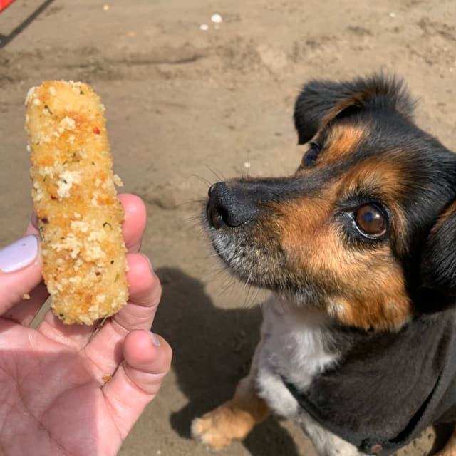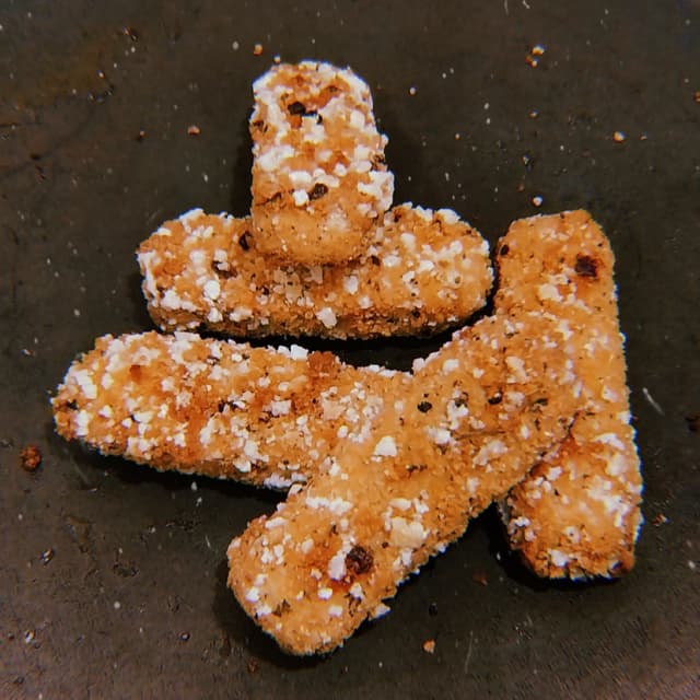 Muy ricos, prácticamente iguales a los nuggets pero en forma de palitos con un toque muy leve a finas hierbas. El rebozado me encantó, quedan re crocantes.