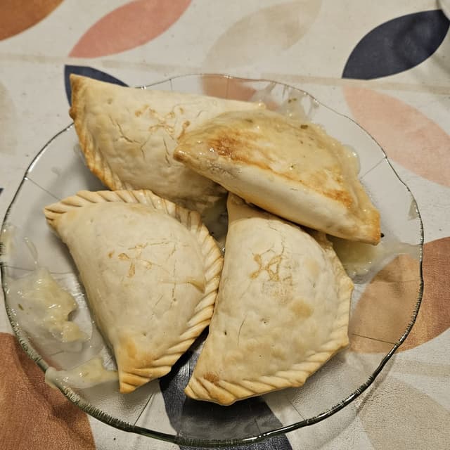 Empanadas preparadas de queso y cebolla caramelizada. Sabor muy rico, abundante queso y buena porción.
