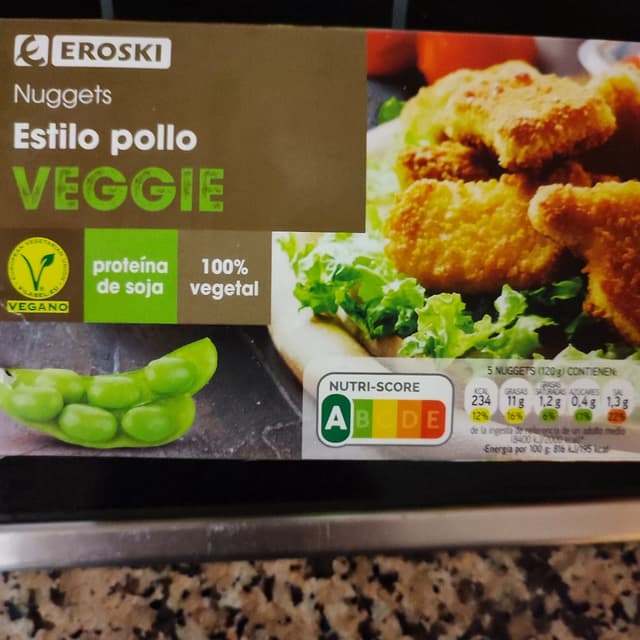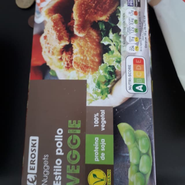 Una ración estupenda de nuggets estilo no pollo que están muy buenos. Por fin Eroski se ha puesto las pilas y ha empezado a poner más productos veganos. Yuka los califica como excelentes.