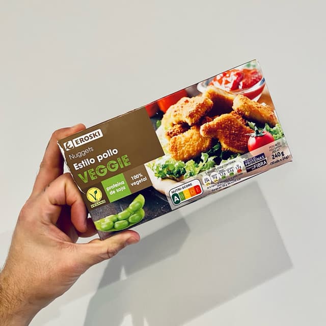 Otro producto de la marca Eroski Veggi, esta vez nuggets estilo pollo. Producto con muy buen sabor en mi caso, los hago en la Air fryer y quedan crujientes. Buena opción rápida de cocinar y ideal para acompañar. Buen precio. La caja vale 2'99€.