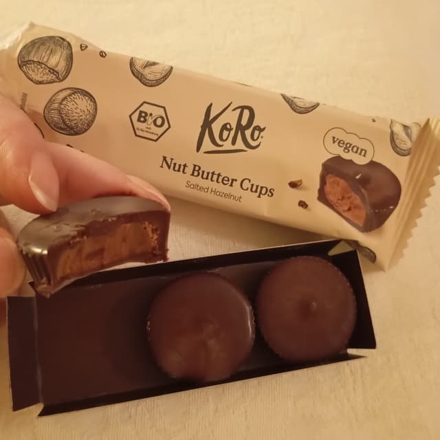 Nut Butter Cups Salted Hazelnut 🥜 by KoRo The taste is really good ! 😋 Very soft and chocolatey inside, sweet and salty at the same time... Will buy it again 🛒🍫😊 www.koro.com Bought: REWE supermarket delivery service, Berlin, Germany Price: 1,99 € #chocolate #chocolatecups #hazelnut #sweetandsalty #chocoholic #chocolatelover #hazelnutcups #cups #sweettooth #veganfortheanimals #animalsfirst #veganproud December 3, 2024 #bringbackdates 📆