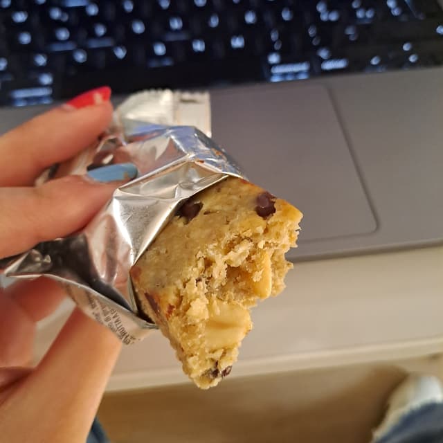 barretta all'avena con pezzi di arachidi e gocce di cioccolata, molto buona e un sapore deciso. anche la consistenza è buona perché resta bella morbida senza essere pastosa.