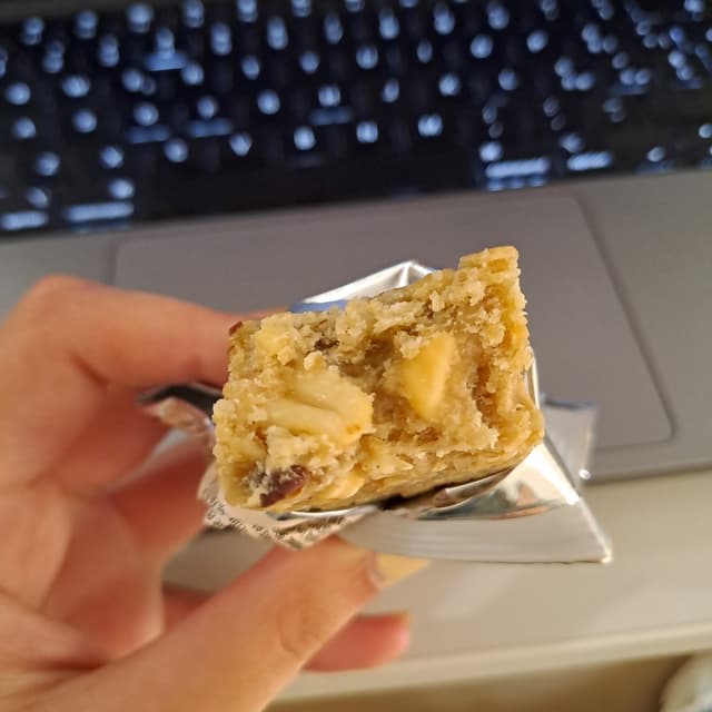 Une barre à l'avoine délicieuse ! Et je pèse mes mots. Assez étonné, elle est moelleuse et fondante tout en ayant un petit côté crunchy. C'est une dinguerie !