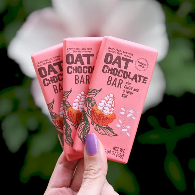 These mini oat milk #chocolate bars from Tjs are just sooo cute. I really love the product packaging and colors. They're very ice catching. They come in a square box with three individually ( recycled paper) wrapped bars inside. These bars are #vegan and #glutenfree and they were under $2, which is a great value especially for a #vegan bar. Usually products with oat milk are more expensive. These are a perfect option for those who want a bit more 💥 to their chocolate bar as this has some crunchy rice pieces, adding a little fun kick. #veganfortheanimals #abillionlove #ecopackaging #ditchdairy