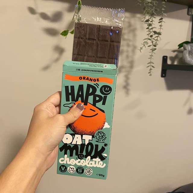 This was another #vegan chocolate bar I picked up in Michigan. I just love the packaging.💙 This brand Happi uses #oatmilk in their bars, making them so creamy and delicious. This dark chocolate bar is extra special because it has orange in it as well. I love the fresh smell of taste if orange zest. These bars are super cute, and they have two sizes. I purchased the larger size for $5. I believe the brand operates mostly online, so you can order there. I also love that they use fair trade and ethically sourced cocoa! #veganfortheanimals #abillionlove #veganisnotscary #govegan #ditchdairy