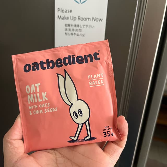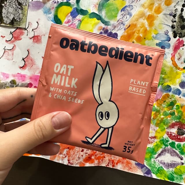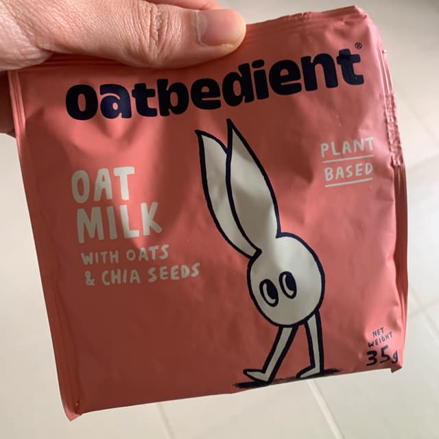 More #oatmilk powder🥛 Judging from the packaging, I expected it to be strawberry 🍓 (or generally berry) flavored. But nope, it’s with #chiaseed! #berrylover Same procedure again: rip open, pour into a cup, hot water on top, stir, drink! Fresh oat milk in seconds (or minutes if your kettle is slow). I wanted cold milk this time so after preparing it, I placed it into the fridge. It separated quite a bit, but nothing a quick stir couldn’t fix again. And I tried foaming it with my milk foaming wand #magician. It doesn’t foam lol Taste-wise it’s very similar to the other ones I’ve tried. Quite sweet, malty (from malt extract) and creamy. Very convenient while traveling but honestly, nothing I’d get for daily use because: #deathbyplastic.