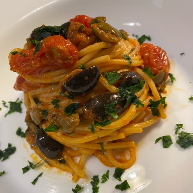 Il video ricetta su tiktok: https://vm.tiktok.com/ZGJg1ao52/ 🇮🇹 la mia pasta alla puttanesca 😍 Ho usato le olive verdi e nere ed è uscita un super piatto: gustoso, piccante e un tocco dolce del pomodoro 🤤 🇬🇧 this is my pasta alla puttanesca 😍 I used green and black olives and it was a super dish: tasty, spicy and with a little touch of sweetness given by the cherry tomatoes 🤤 #pasta #vegan #veganpasta #abillionlove #veganisnotscary #rifugiomiletta #crueltyfree #spaghettiallaputtanesca