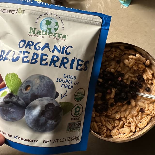 These #freezedried #blueberries are perfect to add to #oatmeal, #cereal and even #homeadegranola! I usually wait till these are on sale or cheaper variety pack on #amazon since they are a little pricy. I like having these on hand in pantry especially during the nasty winter months when my favorite #berries are not in season and expensive. #veganeasychallenge #natierra #govegan #goveganfortheanimals #goveganfortheplanet #abillionlove
