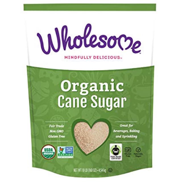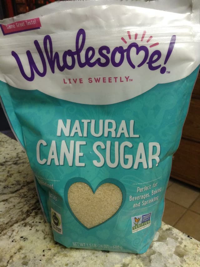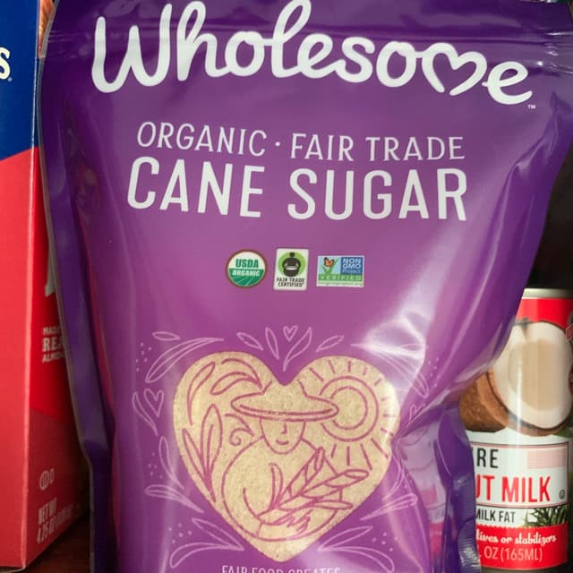 Conversion Chart 1 CUP Organic Cane Sugar = 1 CUP Refined White Sugar Wholesome Fair Trade Organic Cane Sugar is made from certified organic sugar cane grown in South America. The cane juice, rich in molasses, vitamins and minerals, is squeezed from fresh sugar cane, evaporated and crystallized. The result is a blonde-colored, perfectly sweet natural sugar that will enhance your favorite coffee, tea, cereal or baked good. Organic sugar is naturally gluten free and can be used as a one-for-one replacement for refined white sugar.