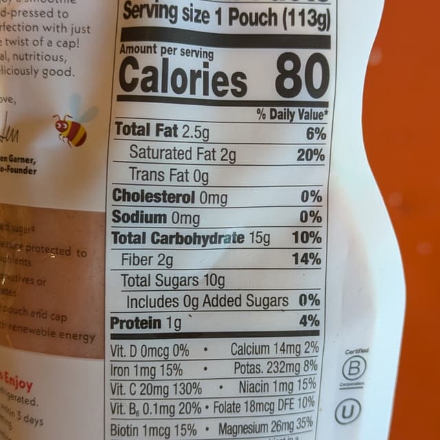 I liked this one better than the other flavor juat reviewed. This has beet, orange and banana in place of sweet potato and blueberry. Like the taste, short #organic ingredient list, #noaddedsugar . This one is berry-er than the "berry berry" #berrylover. Banana, pumpkin, orange, date, lemon are berries. Strawberry otoh #notaberry