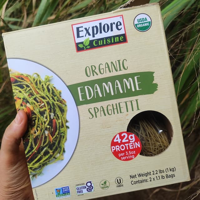 🫛🍝 My partner bought these #organic #edamame #spaghetti looking for pasta with higher #protein. These deliver with 42 grams wow! They were nice too. I’d get them again for that nutrition. We got these at our local health food shop. Not cheap. I think it was about £4. #glutenfree 🥕Yuka: 🟢Excellent 100/100