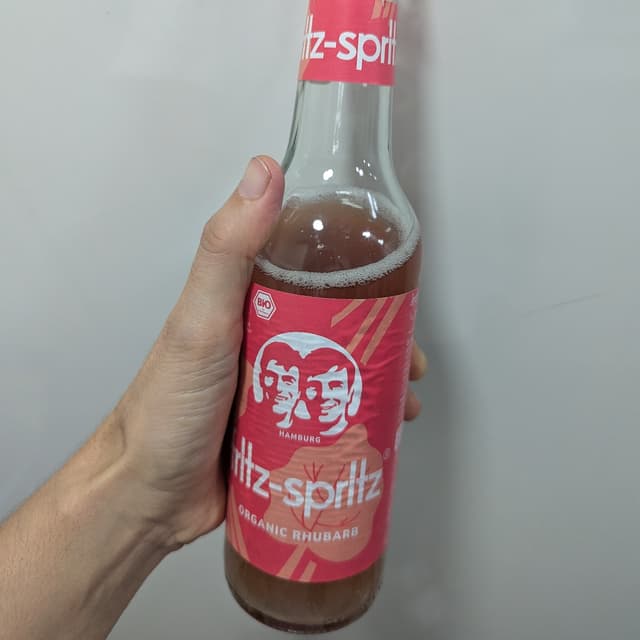 Bebida original, ligeramente carbonatada, con sabor algo ácido y dulce a partes iguales. Me recuerda a la manzana, pero es algo diferente. Es de ruibarbo, pero aquí por España no tenemos mucha referencia del sabor de este vegetal, que he probado en contadas ocasiones però nunca hasta ahora en bebida.