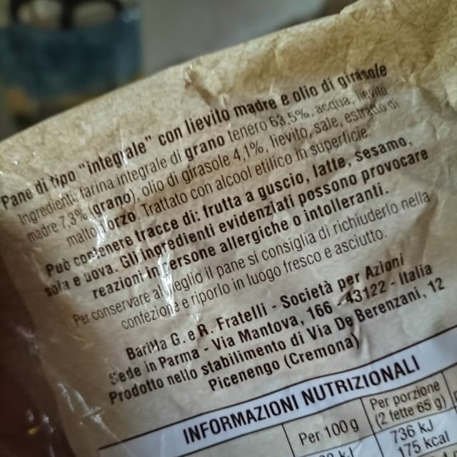 Panotta di farina integrale con lievito madre, già tagliata a fette, appena si apre la confezione si sente quell'odore di alcool solito del pane confezionato🙄una volta tostato è buonissimo😃sa solo di pane caldo, bontà assoluta 👌✅✅✅ #veganuary2022
