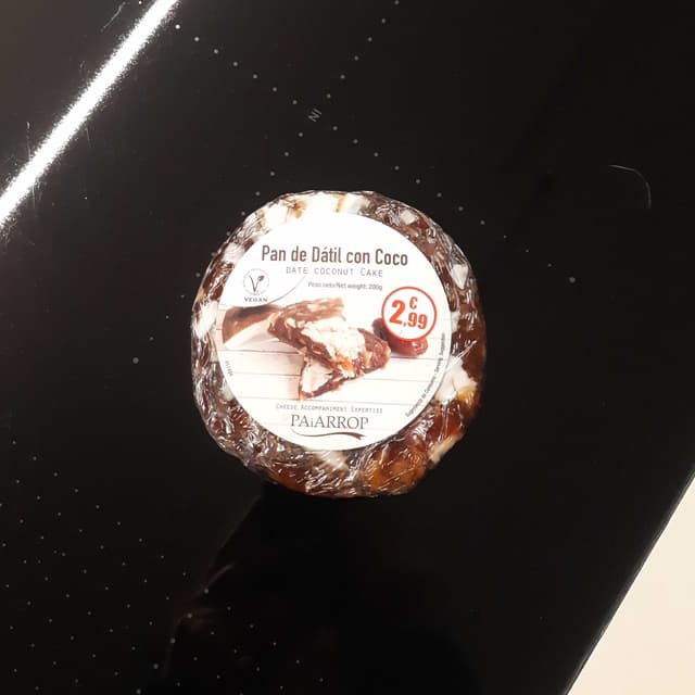 Pan de dátiles con pedacitos de coco. A mí me parece riquísimo, si te gusta el dátil no falla, y los trocitos de coco le Dan un dulzor y un sabor muy original. Nutricionalmente son sobretodo hidratos de carbono y bastante azúcar (de la propia fruta). Combinado con un queso vegano, tienes un aperitivo delicioso! #datiles #veganisnotscary #abillionlove #abillionwomen #santuariovegan #seashepherd #peace